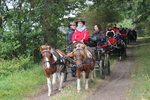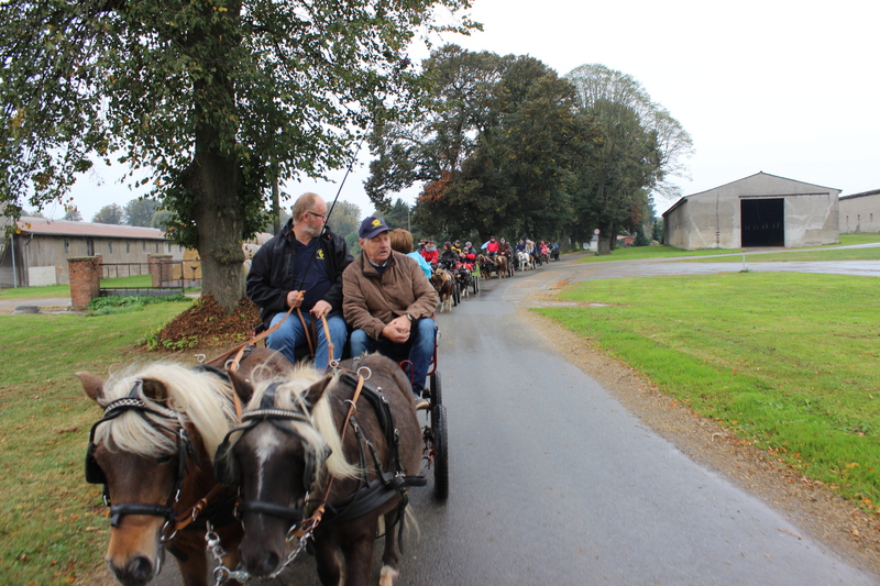 Jedes Jahr im Oktober läd der Verein der IG-Shetlandponyzüchter MV zur Jahresabschlussfahrt in Setzin. So fanden sich auch in diesem Jahr neun Kutschen, 17 Pferde und 31 Fahrfreunde bei Familie Koch ein. Um Zehn Uhr setzte sich die kleine Kolonne durch den Setziner Wald in Richtung Kloddram in Bewegung. Aufgrund des herbstlichen Wetters wurde das gemeinsame Picknick etwas verkürzt, doch das konnte die Laune nicht trüben. Zurück ging es über Ruhetal, wo das diesjährige Gemeinschaftsfoto entstand. Im Anschluss an die dreistündige Ausfahrt lud die IG zum gemeinsamen Mittagessen ein.