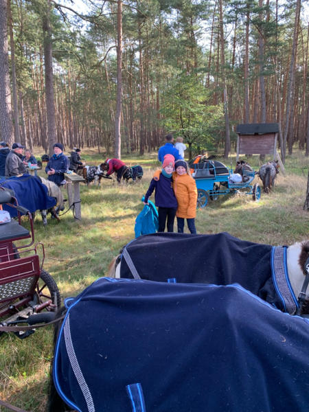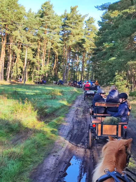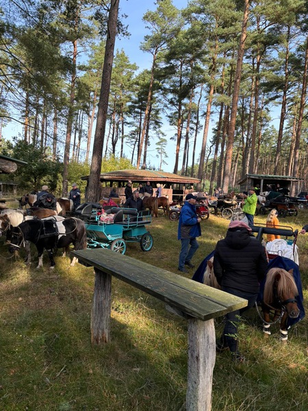 Ausgangspunkt für die 16 Gespanne + Reiter war der Ponyhof Huf-Glück von Annika und Miklas Becker in Heidhof.