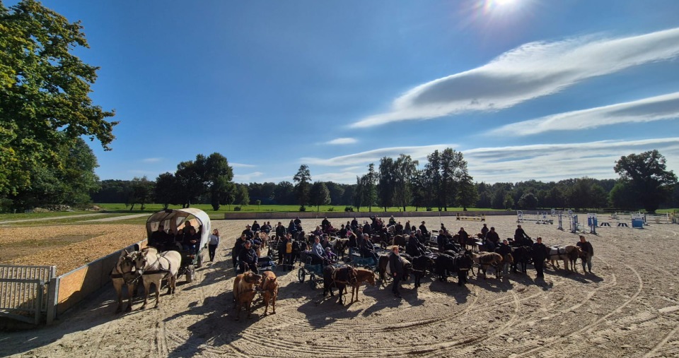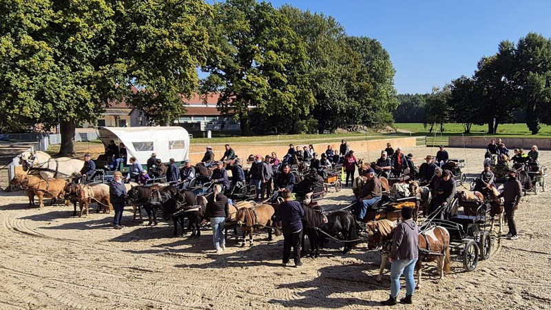 Mit dabei waren in diesem Jahr 22 Gespanne – ein rekordverdächtiges Teilnehmerfeld, das wir so bislang noch nicht erlebt haben: 21 Shetlandpony-Gespanne im Zweispänner sowie ein Kremser, bespannt mit zwei Fjordpferden. Insgesamt nahmen 67 Teilnehmerinnen und Teilnehmer an der Fahrt teil.