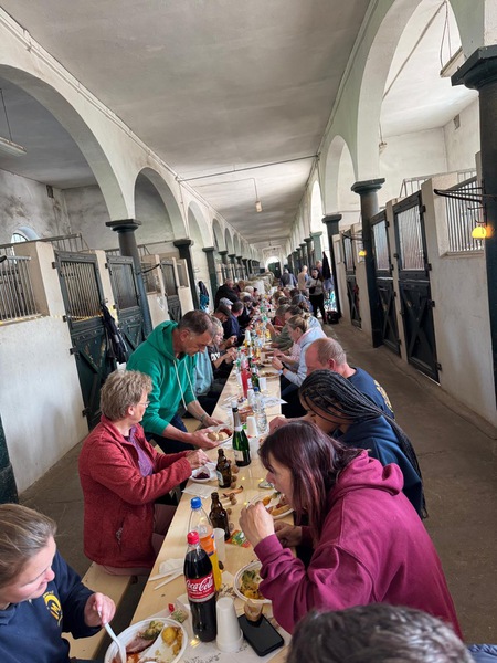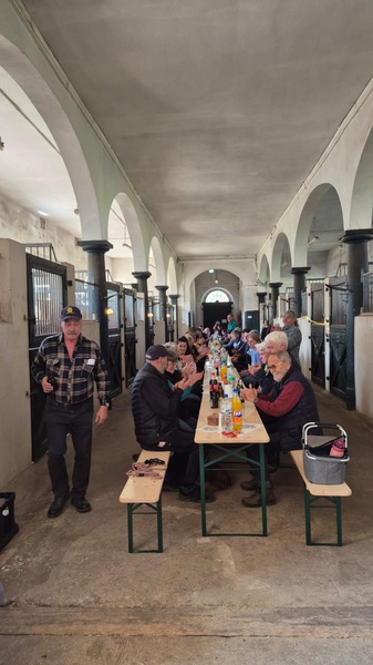 Zum Abschluss stärkten wir uns in der Stallgasse des Landgestüts bei einem vorbereiteten Buffet und ließen den Tag in gemütlicher Runde ausklingen.