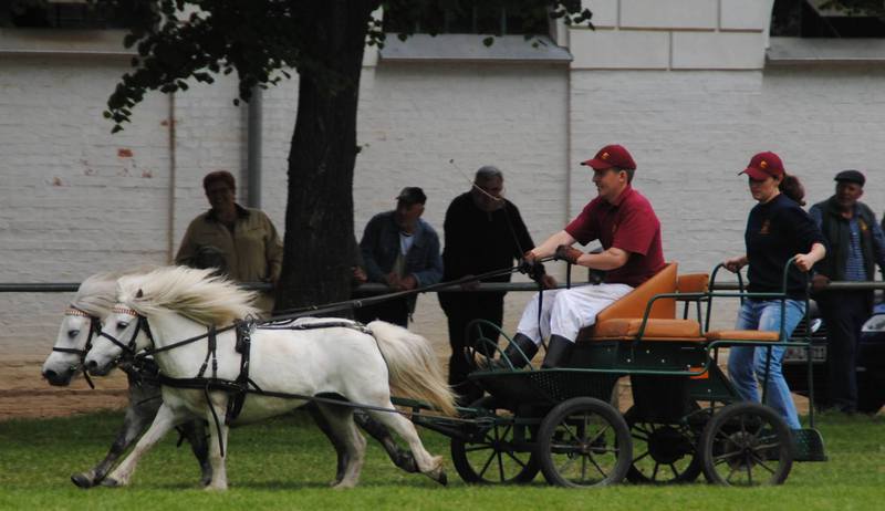 In einem unglaublichen Tempo schoss gleich im Anschluss der Römerwagen mit vier Shetlandponys und einem wagemutigen Fahrer auf den Platz. Andre Greif hatte seine Ponys gut im Griff und die Ponys hatten ein rasantes Tempo. In großen Kreisen ging es im Galopp über den Rasen, ganz so wie früher in der römischen Arena. Bevor die Veranstaltung ganz zu Ende ging wurde sowohl am Samstag als auch am Sonntag ein Shetlandponyfohlen verlost. Während die erste Gewinnerin nur am Telefon beim Gurken ernten in ihrem Gewächshaus erreicht werden konnte, war die Gewinnerin von Sonntag mit ihren beiden Kindern noch auf dem Platz. Wir gratulieren herzlich und freuen uns mit den Einnahmen aus der Verlosung wieder einen Beitrag zum Erhalt des Redefiner Gestütes geleistet zu haben.